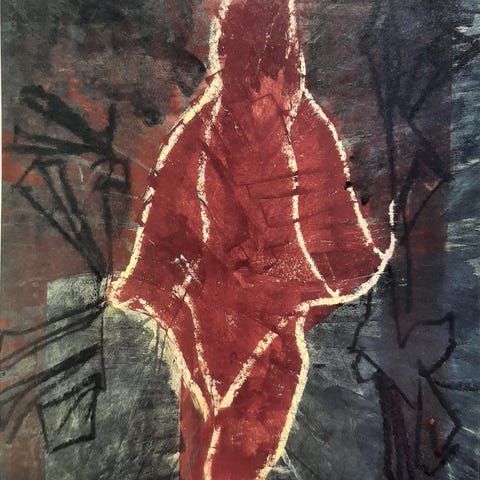 DSB KUNST-PLAKAT i SERIE på 6, PER KIRKEBY, motiv: HUMLEBÆK STATION, SKULPTUREN, b: 62 h: 100, Per Kirkeby – 1938-2018.