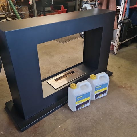 Har også en lille bordpejs i rustfrit stål