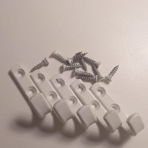 Et lille miks Af sorte hatte/frakke kroge mm Et sæt i aluminium og to Skabs knopper også aluminium Det meste er aldrig brugt 25kr stk Eller byd