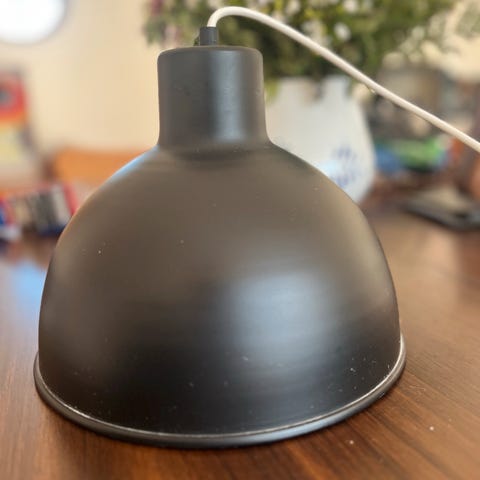 Sort metal loftslampe 7w 80mA sparepære og en ligeså sort metal knagerække m træ knopper, vasketøjspose fra IKEA kan du få med for en flad 20,