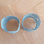 2 fine blonde lanterner til fyrfadslys. Farven er grå med et blåligt skær (tunder grey). Materialet er tyndt metal. De pynter så fint omkring et fyrfadslys, gerne et ledlys. Eller de kan bruges omkring en lille vase med blomster. De er fine som næsten nye og uden brugsspor.