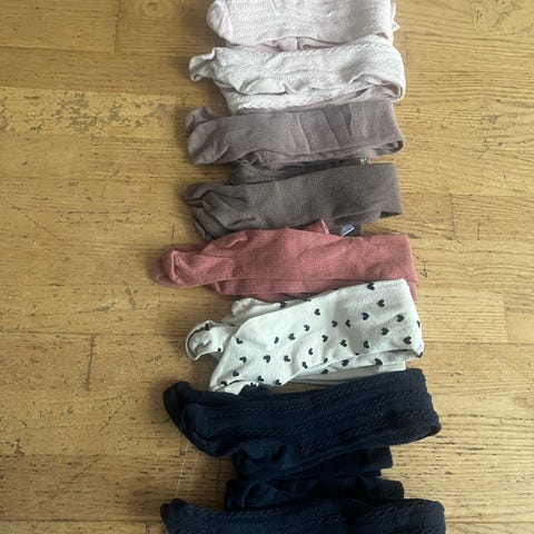 Strømpebukser, strømpebukser, H & M, str. 62, -68 grå strømpebukser + 4 par strømper str ca 15-18 + hvid kortærmet bluse.