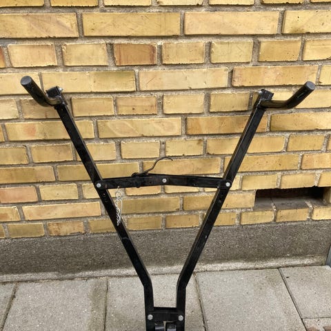 Cykelholder Marius art. nr. 869726 G kan bære en cykel på max. 55 kg. Jeg fik cykelholderen i gave i 2014, men kunne desværre ikke bruge den til min el-cykel. Cykelhandleren ville ikke tage den retur, da den var købt brugt til 700 kr. Kvittering haves.