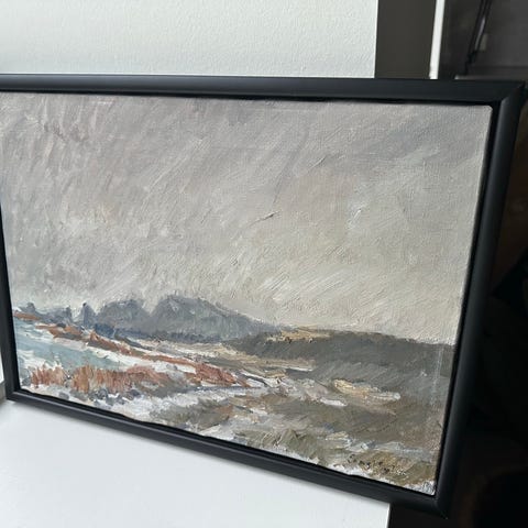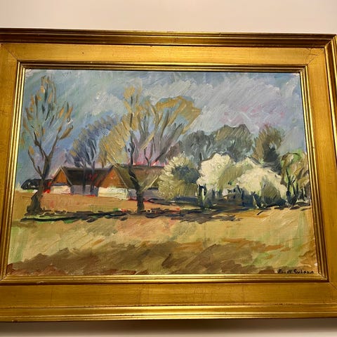 Interessant landskab fra Italien. 50 x 35 ( 64 x 49 med ramme ) cm.