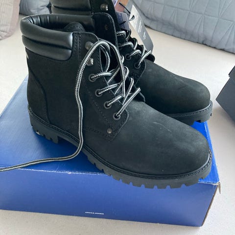 Har sat hvide snørebånd i, for at den matcher den hvide sål.