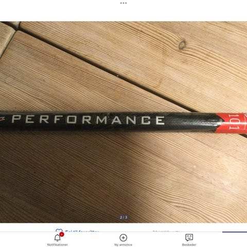 Vi har fire bolde, tasken og Exel staven i 92cm, men kan ikke huske hvad vej den krummer i bladet.