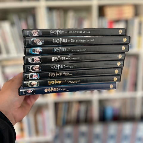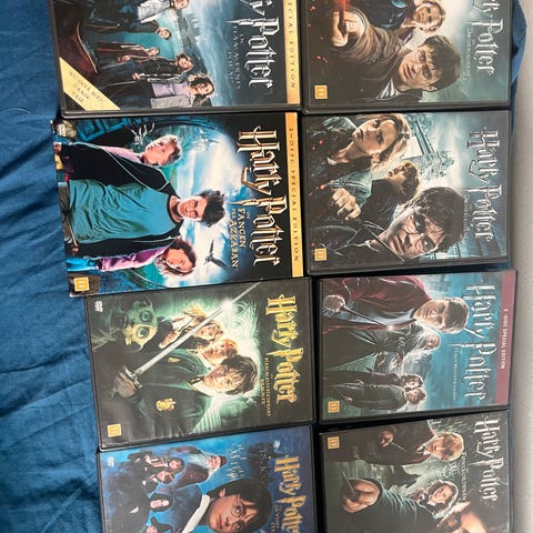 Køb alle Harry Potter filmene til en samlet pris på 200 kr (undtagen 4’eren, som jeg desværre ikke har)