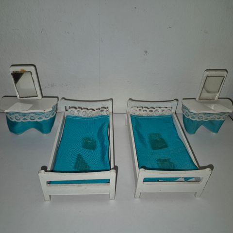 Lisa dukkehus, møbler, blå almue sæt. Pænt sæt