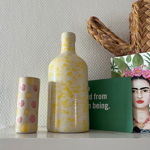 Og en fyrfadslysestage som lyser på fine op når der er lys i den.