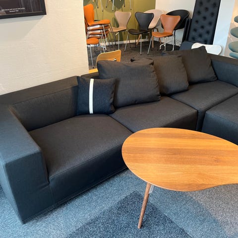Sofaen består af 10 moduler og 7 puder. Konstruktionen er solid, men stoffet på ene modul er itu pga fejlbehandling. Den kan ombetrækkes. Betræk kode haves. Derfor lav pris.