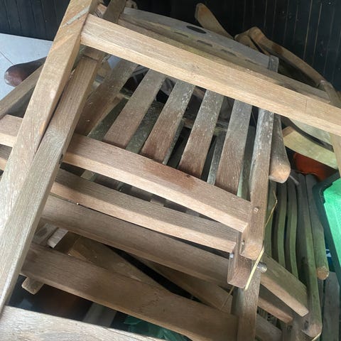 4 styk, Foldstole massiv træ brugt godt stand . Giardino du Lego prisen , pr, styk.