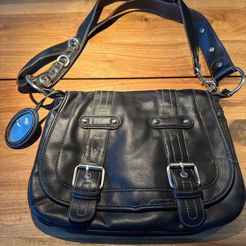 Lækker sort lædertaske med patina