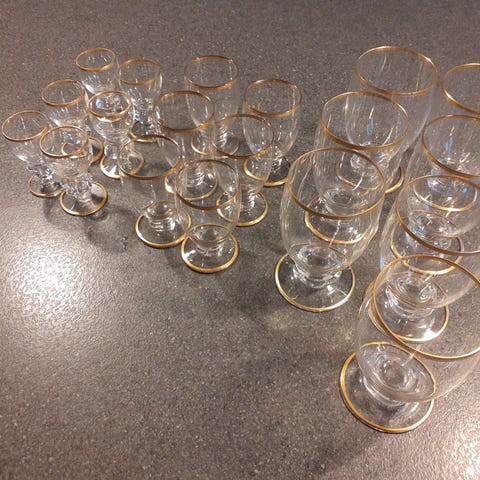 Glas, glas, gisselfelt, 3 Gisselfelt grønne forskellige 1 med guldkant