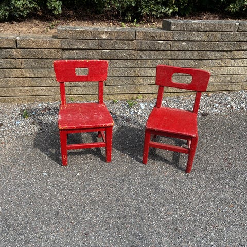 Det er gamle stole fra Rungsted skole.