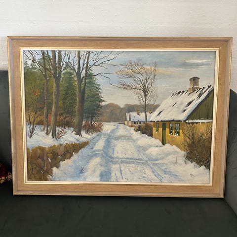 Oliemaleri, Karl Gram, motiv: Landskab, stil: Naturalistisk, b: 42 h: 61,5, Oliemaleri af kunstneren Karl Gram