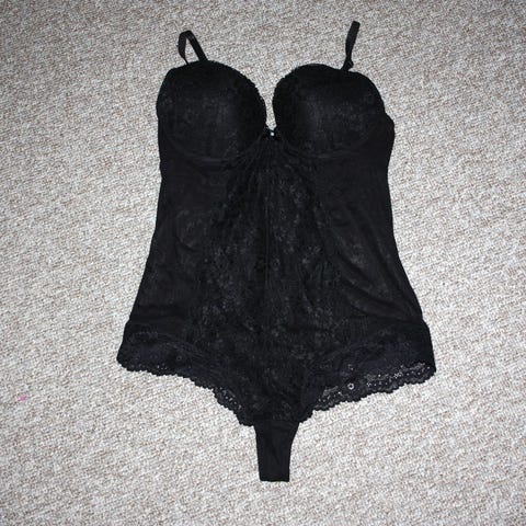 Lækker blød krid hvid bodystocking med g-streng(sidder behagelig) Knapperne gør den virkelig flot og eksklusiv.