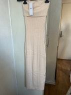 Cremefarvet / beige ribbed bandeau kjole i str XXS - synes stor i str., så har sat kjolen til str XS og tror bestemt også den passes af XS/S ift stretch - se gine billeder.