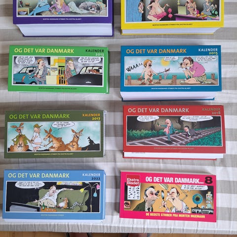 Samling af kalendere og satiriske bøger sælges samlet. 4 stk i alt.