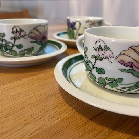 Ikea Margueriter kaffekop og underkop fra halvfjerdserne, designet af Marguerite Walfridson fra Sverige I 1970'erne