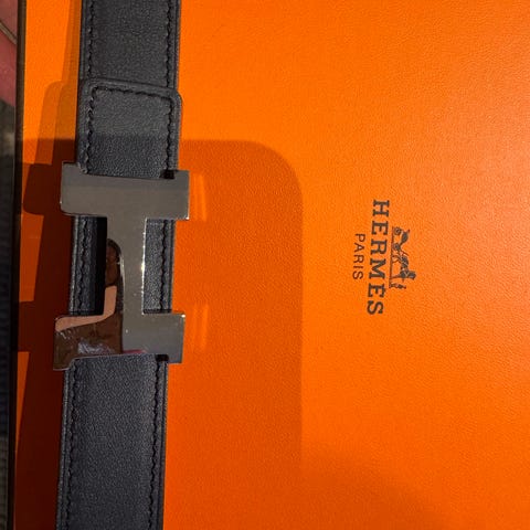 Hermes vendbar læderrem i sort & brun 32mm str 85