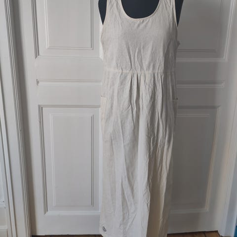 Begge er cremefarvet, 100% bomuld og str 40. Men kan fint passes af andre str da der er bindebånd.