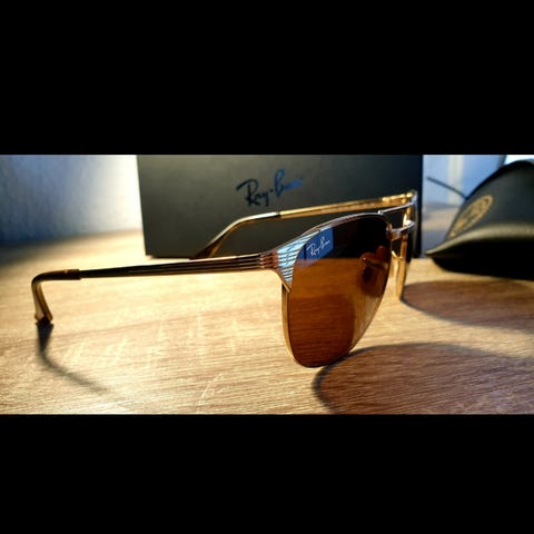 Helt nye Ray-Ban Signet RB3429-M solbriller med et klassisk guldstel kombineret med fyldige brune B-15-linser. 🌄 ✈️