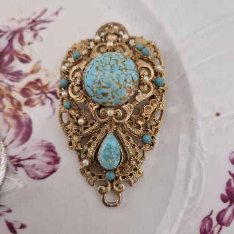 Vintage mode Gripoix glasmoghul sort emalje malteserkors vedhæng / broche