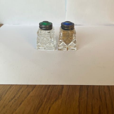 Salt og peber Krystal med Sterling sølv låg