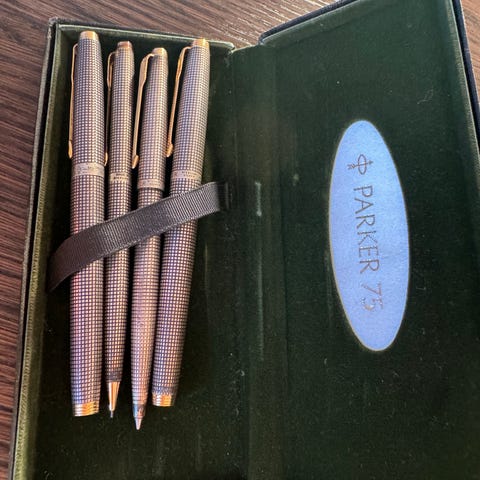 Som nye. Sælges samlet. Spidse på fyldepennen er 18 karat guld.