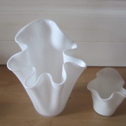 Glas, Vase, Foldevasen HVID, den store af dem en rigtig fin Tulipanvase på H: 25 x Ø: 19-20 cm Vasen har flere lavere højder men den højeste er cirka 25 centimeter