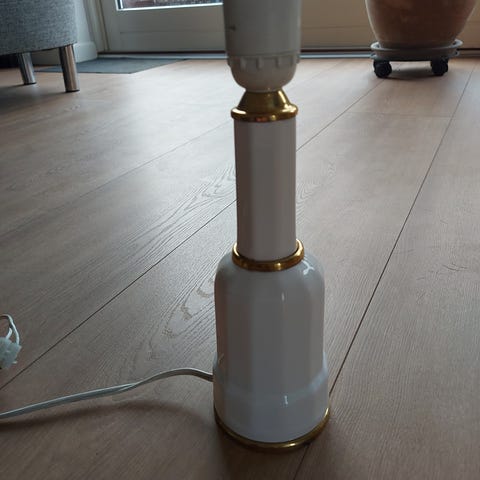 Bordlampe, dekoreret porcelæn og messing. 18 cm høj.