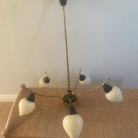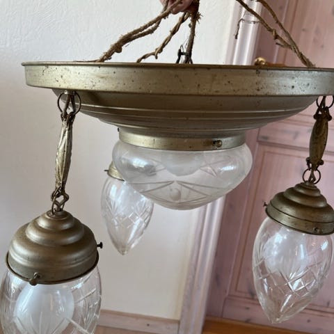 Lysekrone, Gammel lysekrone fra 1950´erne med skærme af opalineglas.