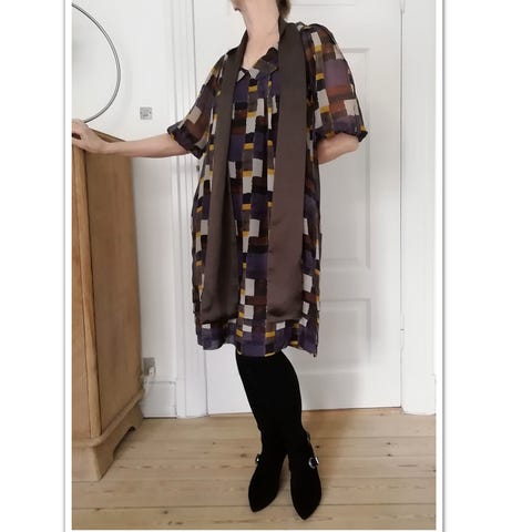 Anden kjole, Intropia, str. L, Marineblå, Silke, Næsten som ny, Smuk kjole til under knæ. Står str. 44 men er som en str. L(40-42).