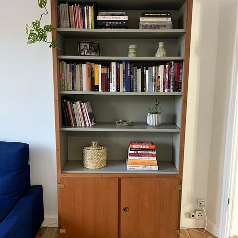 OBS: tilovers fra et renoveringsprojekt af reoler. Hylder er derfor nymalede i en farve, der ligner den oprindelige.