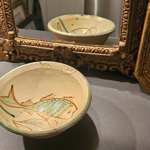 Den flotteste Morano skål i flot gul gylden farve med sølv mønster🥰