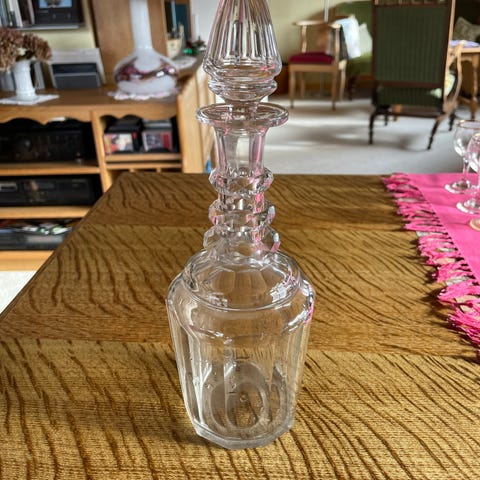 Blå karaffel 20cm, 6 snapseglas mundblæst