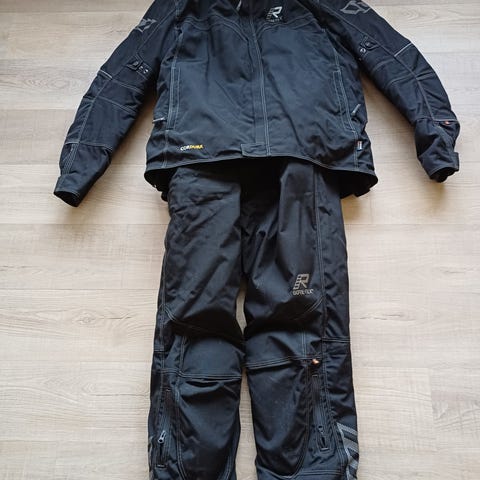 Jakken er i str. 54 og bukser i str. 50 (normal benlængde).