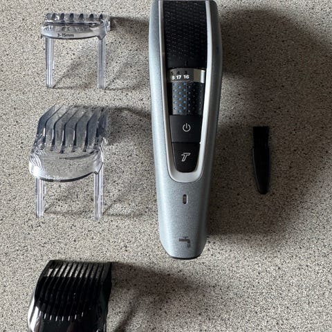 Trimmer fra Philips, som er så god som nu. Med følgende er pose, oplader, børste og 14 hoveder i alt.