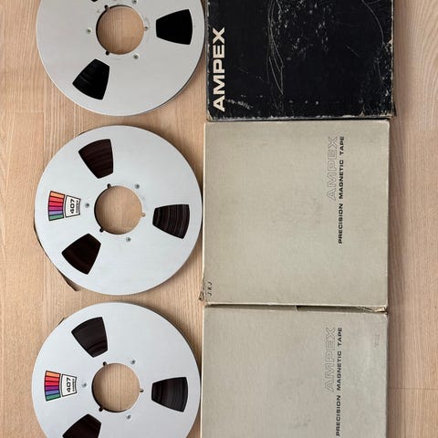 Ampex 1/2 tommer bånd 10,5t 26cm på Alu spoler 2stk i god stand. jeg ved ikke hvad der er på dem, da jeg ikke har en 1/2 t afspiller maskine. sælges kun samlet, ( der er ikke kasser med til dem. ) kan sendes for 100kr. med gls for hurtig kontakt ring til mig på 20657576