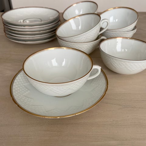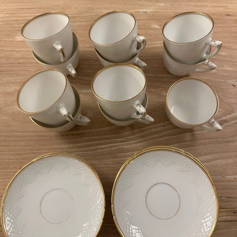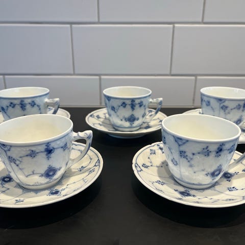 Kopper og underkopper er fra omkring 1940. Der er ingen skår, revner eller slid.
