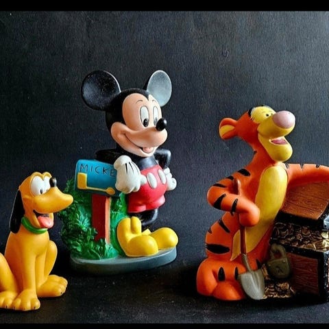 Disney, Figur, 5 Walt Disney gummi figur af ældre dato vintage . Fra ca 1940 . Store Stygge ulv og søn og de 3 små grise. Samlet pris 500 kr. Se også mine andre annoncer. Hv123