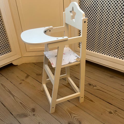 Høj dukkestol Lille flig itu i det ene hjørne af bordet