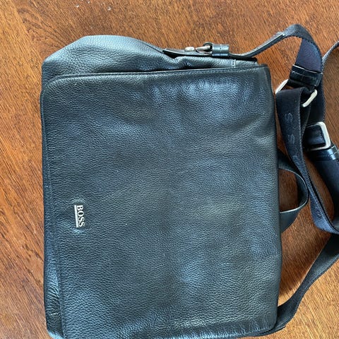 Virkelig rummelig taske med plads til PC m.m. Udvendig er der en ekstra lomme på bagsiden , 2 mindre i hver side og 2 flade lommer på forsiden - alle med lynlås. Indvendig er der en også en ekstra lynlåslomme samt to mindre, åbne rum. Læder og robust lærred.