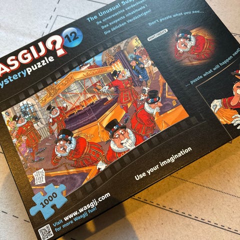 Sættet er komplet med alle 6 uåbnede gåder. Kun kassen har været åbnet, og gåderne fremstår derfor som nye, indpakket i deres originale emballage.