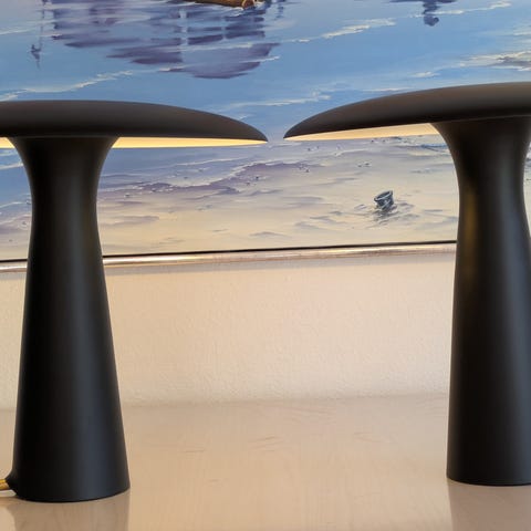Lampen har en justerbar metalskærm, så du kan rette lyset præcist – perfekt som læselampe, på skrivebordet eller i stuen.