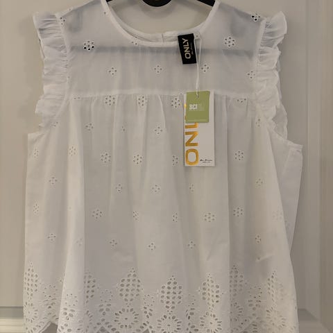 Højeste mode - virkelig flot skjorte str. 40 med de yndigste broderi anglaise mrk. DAXON.