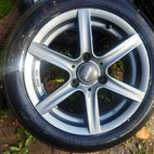 3 stk alu fælge med 3 helt nye dæk aldrig brugt og et rigtig pænt dæk på den sidste fælg
