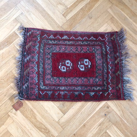 Et meget lille ægte tæppe, Brug den som en musemåtte eller i en stol, hvor sædet et lidt slidt.