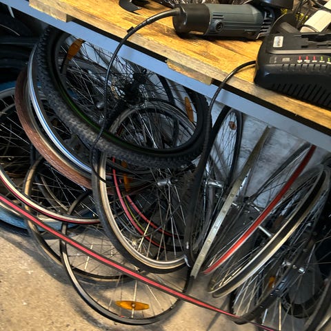 Ukendt nav og rim (intet jeg lige kan identificere dem på). De kører lige og køre godt - hub skal dog spændes, da den sidder lidt løst