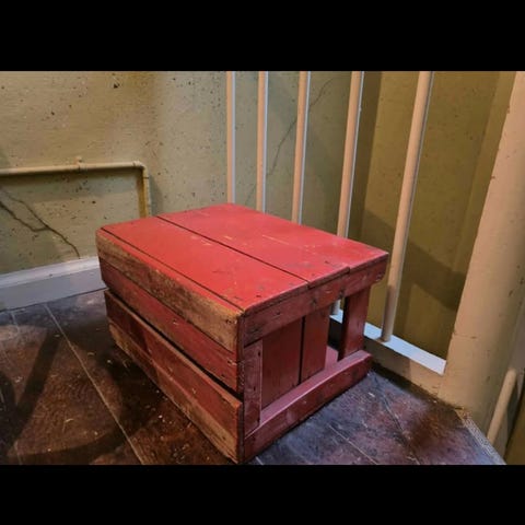 Gammel ølkasse som er malet i grøn. Den kan bruges over alt. Hylde, bord, natbord eller også som en lille bænk/taburet